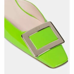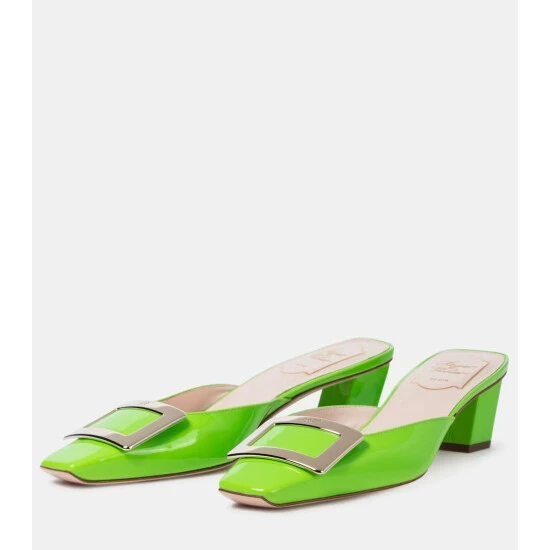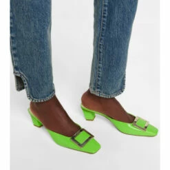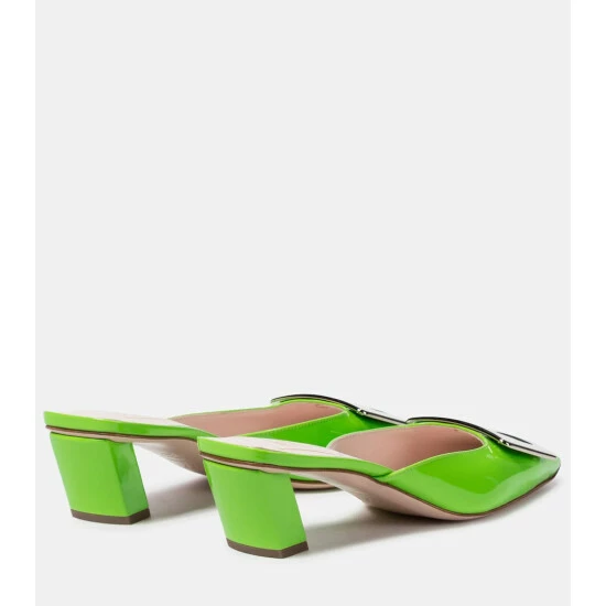 Roger Vivier’s hallmark Belle Vivier mules receive a vivid update in a bright shade of “parakeet” green, ensuring they’ll make a playful stamp on your looks. This patent leather pair is set on low 45mm heels and finished with monogram-engraved metallic buckles – a house signature coveted by the brand’s devotees.