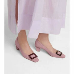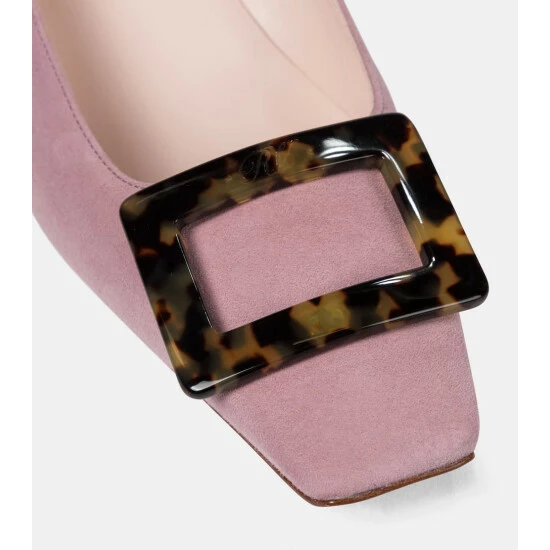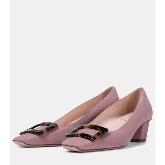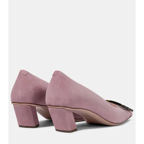 Accent your everyday wardrobe with Roger Vivier’s signature Belle Vivier pumps. Made in Italy from sorbet-pink suede, this pair is set on modest 45mm slanted heels and comes detailed with logo-engraved tortoiseshell buckles.