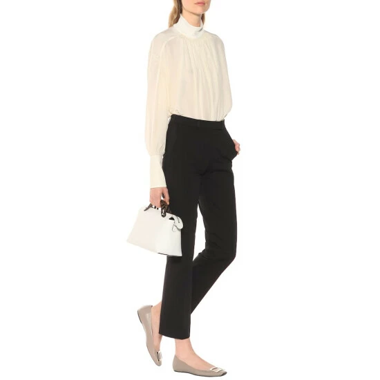 Evolve with the season and opt for a demure footwear favorite from Roger Vivier: the Belle Vivier ballet flats in taupe gray. Crafted from smooth leather and finished with a sleek buckle accent, these beauties will ensure any wardrobe has a touch of sophistication.