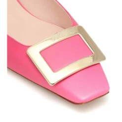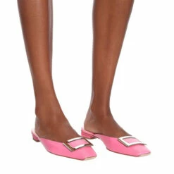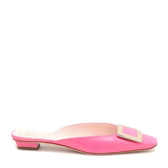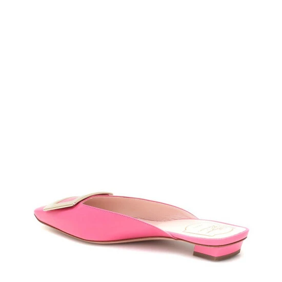 Sleek and sophisticated lines inform these beige Belle Vivier mules from Roger Vivier. Made in Italy from pink leather, they’re cut with squared toes, which are embellished with the label’s signature logo-engraved buckles. Slender block heels will provide endless comfort from day to night.