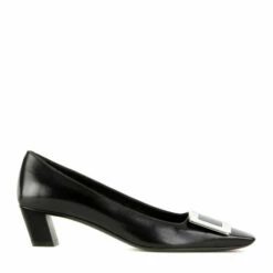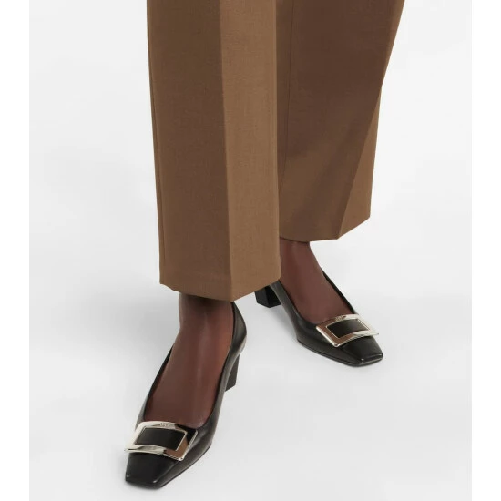 Accent your work wardrobe with Roger Vivier’s Belle Vivier leather pumps. With a smooth finish in chic black leather, modest slanted heel and metallic buckle, they’ll prove an easy pick for grown-up glamour.