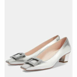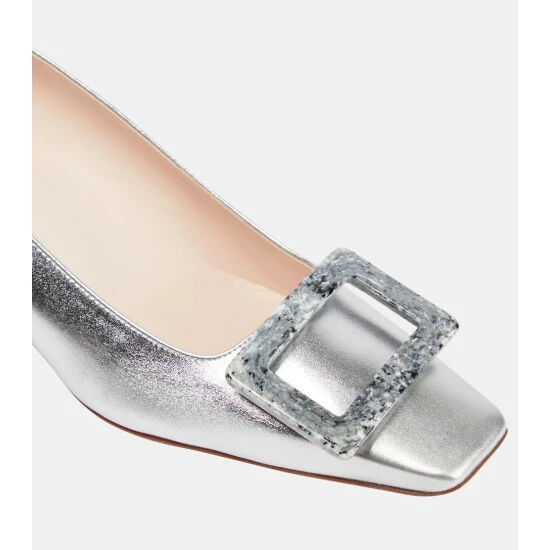 Accent your everyday wardrobe with Roger Vivier’s Belle Vivier metallic leather pumps in a modern silver hue. With a modest slanted heel and the label’s signature square buckle, they’ll prove an easy pick for grown-up glamour.