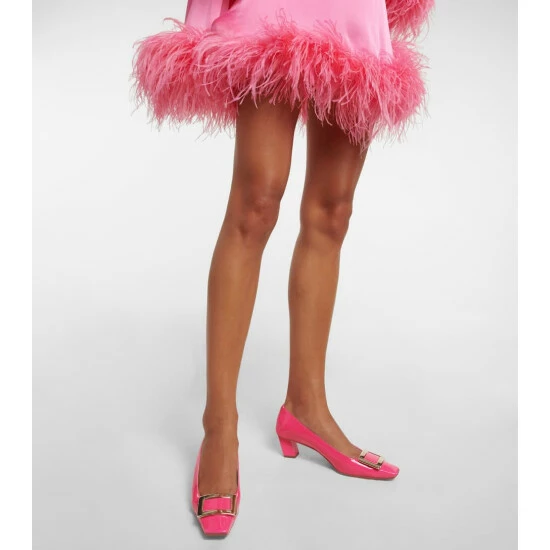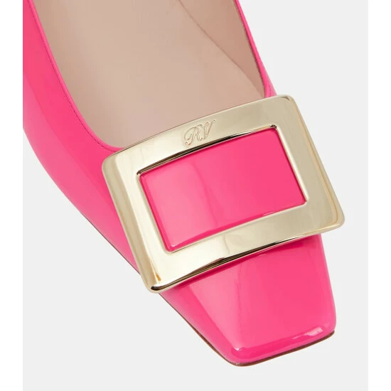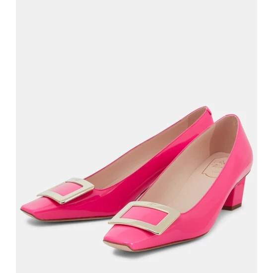 Accent your work wardrobe with Roger Vivier’s Belle Vivier pumps. In smooth, chic pink patent leather, accented with modest slanted heels and metallic buckles, they’ll prove an easy pick for instant glamour.