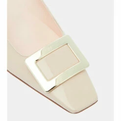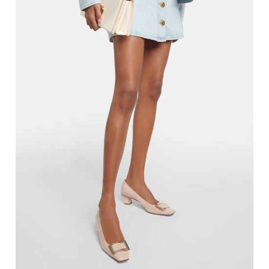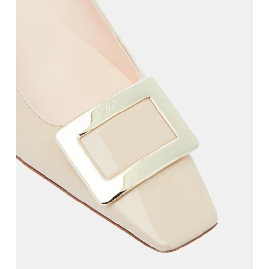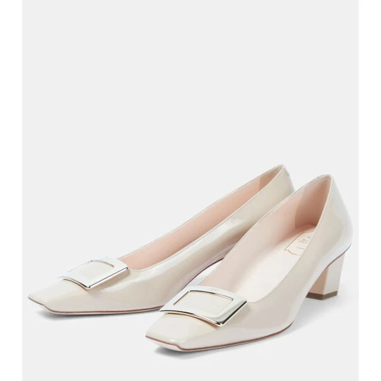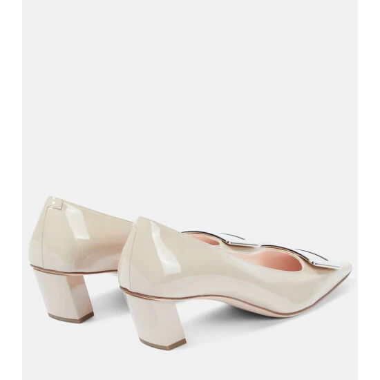 A label signature, Roger Vivier’s Belle Vivier pumps show the enduring lure of ‘60s design cues. Defined by their discerning square silver-toned buckles and coordinating toes, the slender silhouette is crafted from patent leather and set atop slanted block heels that exude elegance with every step.