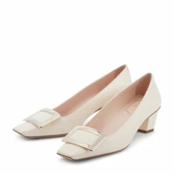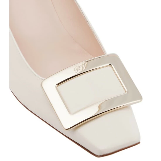 Accent your work wardrobe with Roger Vivier’s Belle Vivier patent leather pumps. With a glossy finish, modest slanted heel, and metallic buckle, this pair is an obvious pick for grown-up glamour.