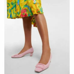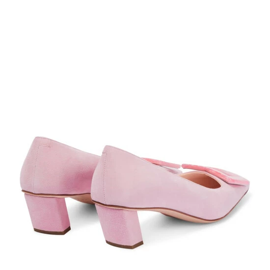 Accent your work wardrobe with Roger Vivier’s Belle Vivier pumps. In soft, pink suede leather, finished with modest slanted heels and stone buckles, they’ll prove an easy pick for instant glamour.