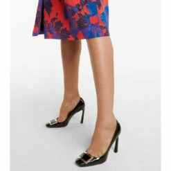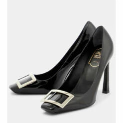 Updated here in black patent leather, the Belle Vivier Trompette pumps are an enduring favorite from Roger Vivier. This squared-toe style is finished with the house’s iconic logo-engraved buckle and signature curved 100mm heels.