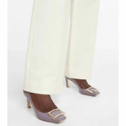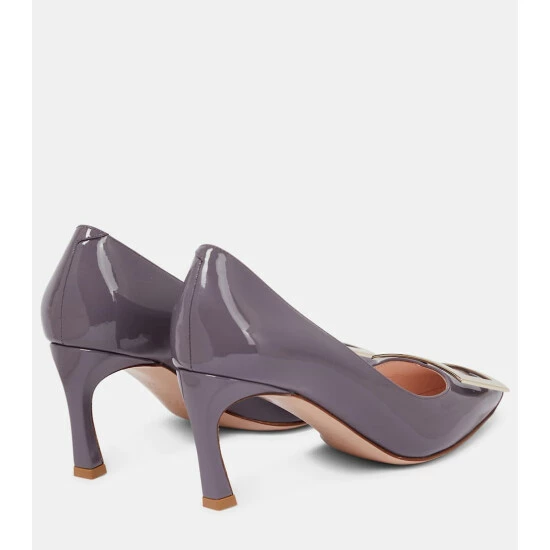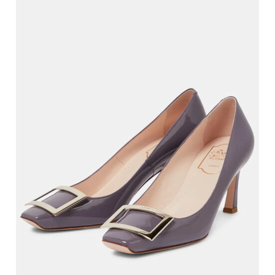 Updated here in purple, the Belle Vivier Trompette pumps are an enduring favorite from Roger Vivier. Made in Italy from patent leather, this squared-toe style is finished with the house’s iconic logo-engraved buckle and signature curved 70mm heels.