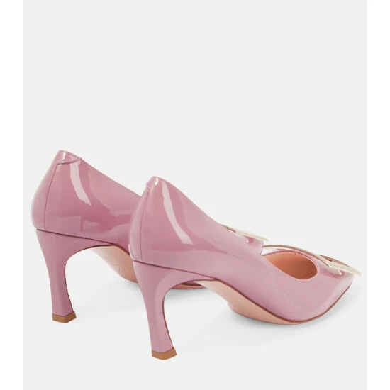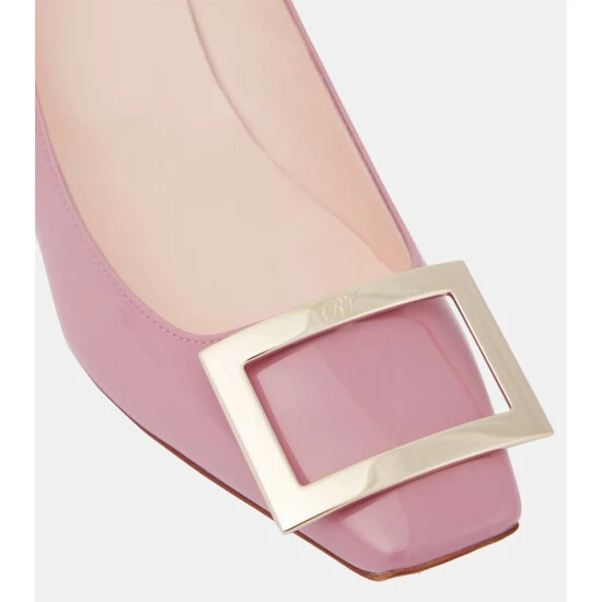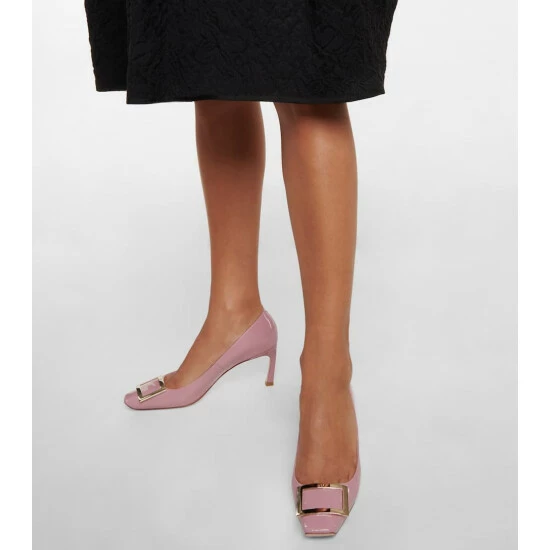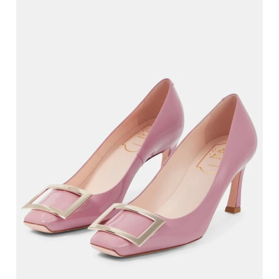 Add a touch of sophistication to any ensemble with Roger Vivier’s Belle Vivier Trompette leather pumps. Crafted from pink patent leather, the square-toe style features a 70s-inspired heel and a metallic buckle.