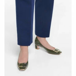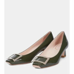 A pair of Roger Vivier pumps – like the iconic Trompette style – will elevate any look, whether it’s a boardroom or dinner-date occasion. The square-toed pair is made from khaki-green patent leather and is adorned with the brand’s signature buckles. Tapered 45mm heels cater to comfortable wear.