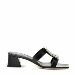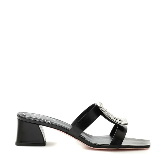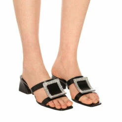 Roger Vivier’s take on effortless sandals has been crafted in Italy from smooth black leather for an elegant finish. Set on a slanted low-block heel, the upper features dual straps, joined by the label’s signature oversized buckle in gleaming silver-toned metal and crystal embellishments. Slip yours on next to matching maxi dresses for a smart summer-ready look.