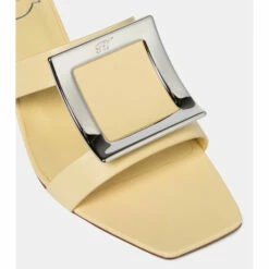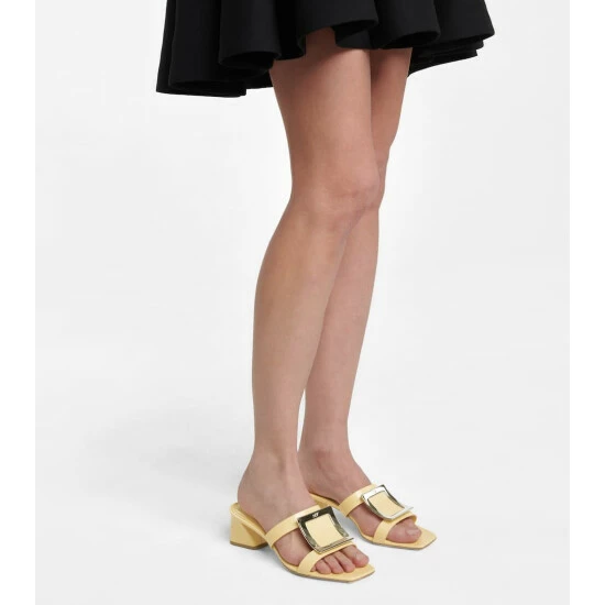 Roger Vivier’s Bikiviv’ sandals are reimagined in soft-serve yellow – the perfect way to tap into the season’s penchant for sorbet shades. Made in Italy from smooth calf leather, they have a square-toe silhouette with the label’s signature logo-engraved buckles. The 45mm block heels and lightly padded insole ensure daylong comfort.