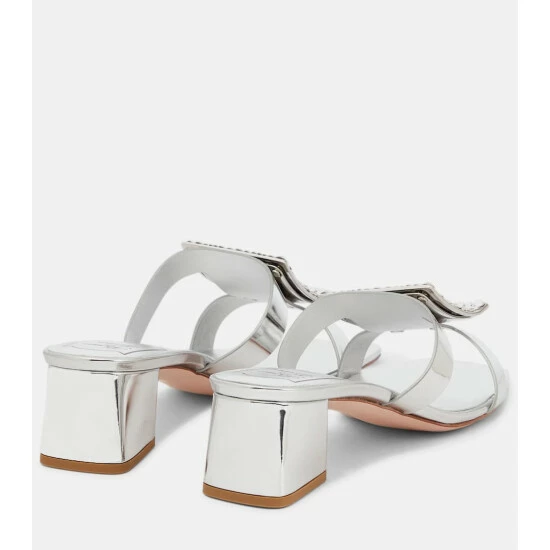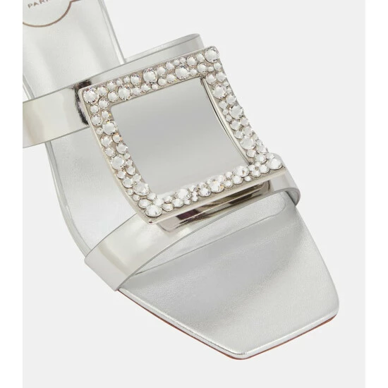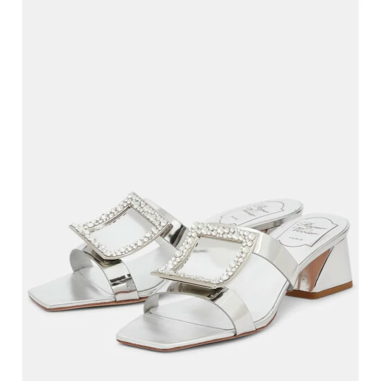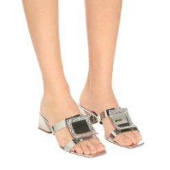 Roger Vivier’s Bikiviv’ 45 sandals are made in Italy from look-at-me silver leather. Set on slanted block heels, this striking style features the label’s signature oversized buckles adorned with crystal embellishments. Style yours with a billowy white dress.