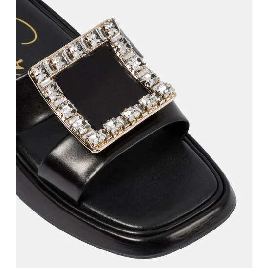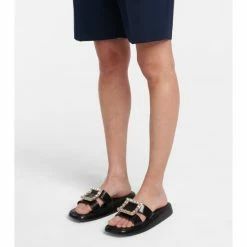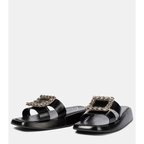 Bring a touch of glamour to summer looks with the black Bikiviv’ platform slides from Roger Viver. Made in Italy from smooth calf leather, they have sparkling crystal strass buckles – a glamorous take on the label’s signature motif – and comfortable, lightly padded insoles.