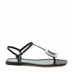Slip the Bikiviv’ sandals from Roger Vivier into your shoe edit for effortless warm-weather style. This strappy silhouette is made in Italy from sleek black calf leather and comes detailed with the label’s signature buckle detail in silver-tone hardware.