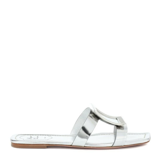 Roger Vivier’s Bikiviv’ slides have been crafted from high-shine silver leather for a glamorous effect. They have dual straps joined by the label’s signature oversized “buckle” – a detail that fashion insiders will instantly recognize.