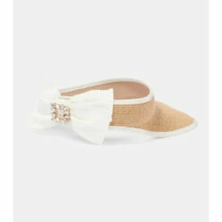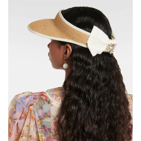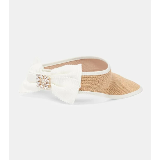 This raffia-effect visor from Roger Vivier will protect you from the sun in style. Made in Italy, this design is fully lined and features a grosgrain ribbon in the back adorned by a crystal-embellished buckle.
