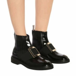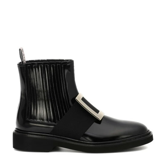 Polished black leather and gleaming golden hardware define the Chelsea Viv’ ankle boots from Roger Vivier. This flat style has been crafted in Italy with almond toes, gusseted sides and branded pull tabs that create an overall polished aesthetic. Style yours with cropped tailoring and printed dresses alike.