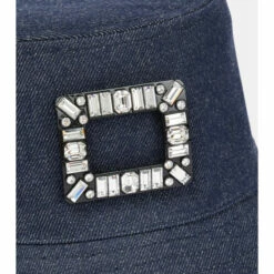 Roger Vivier illuminates the on-trend bucket hat with a signature crystal-embellished buckle. The design is made from cotton denim and has a stitched brim.