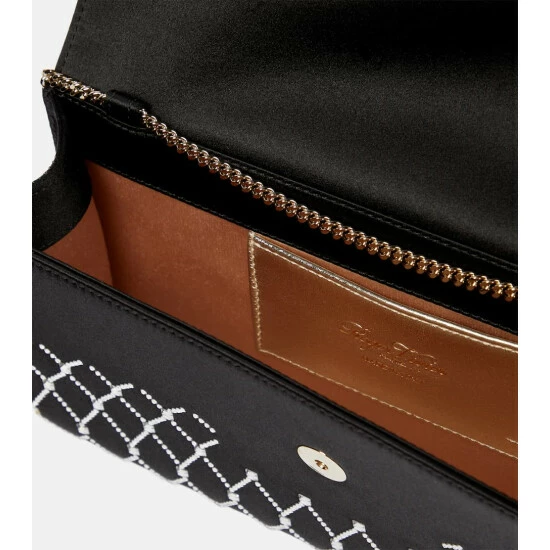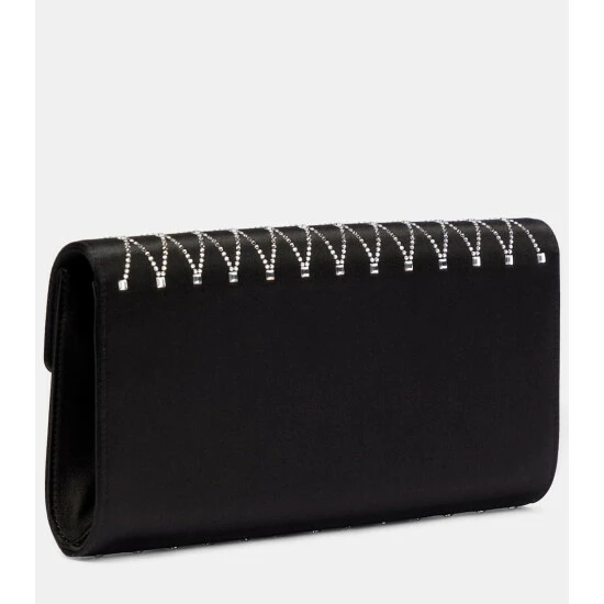 Roger Viver’s Envelope clutch is primed for your next gala evening. It’s made from lustrous satin with diamond-shaped crystal embellishments, a decadent buckle and detachable slinky chain-link strap.
