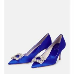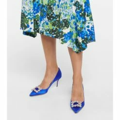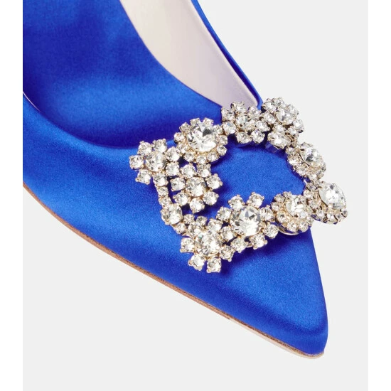 In blue satin, the Flower Strass pumps from Roger Vivier are worth saving for special events. This 65mm-heeled pair are defined by the crystal-encrusted buckles that rest atop their pointed toes. Full leather linings cater to essential comfort.