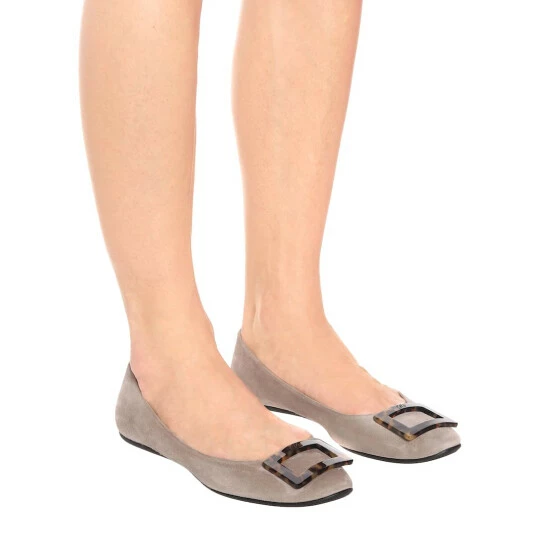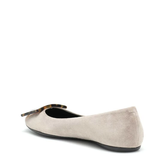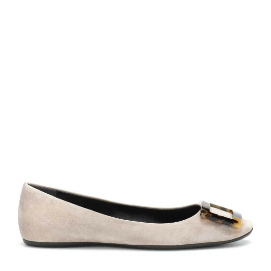 Roger Vivier reinterprets the iconic Gommette ballet flats in a delightful, new iteration. Crafted in Italy from classic beige suede, the design is adorned with the signature square buckle in a modern tortoiseshell finish. As practical as it is pretty, the silhouette has a rubber outsole for day-long wear. Take yours from boardroom to brunch, coordinating with on- and off-duty ensembles alike.