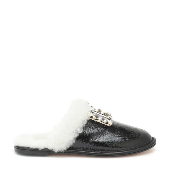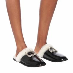 Achieve an opulent work-from-home aesthetic with these black Hotel Vivier slippers from Roger Vivier. Made from soft back leather, they have round toes and are embellished with the label’s signature crystal strass buckles. This version of the style is finished with a plush shearling lining: ideal for winter days.