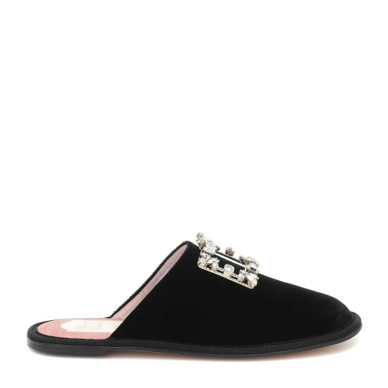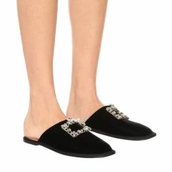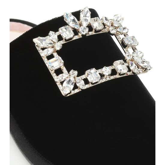 Achieve an opulent work-from-home aesthetic with these black Hotel Vivier slippers from Roger Vivier. Made in Italy from plush velvet, this backless style is cut with round toes and embellished with the label’s signature crystal-encrusted Strass buckles.