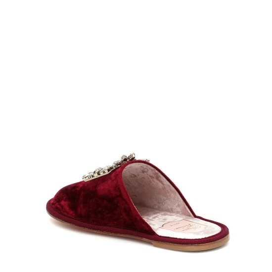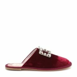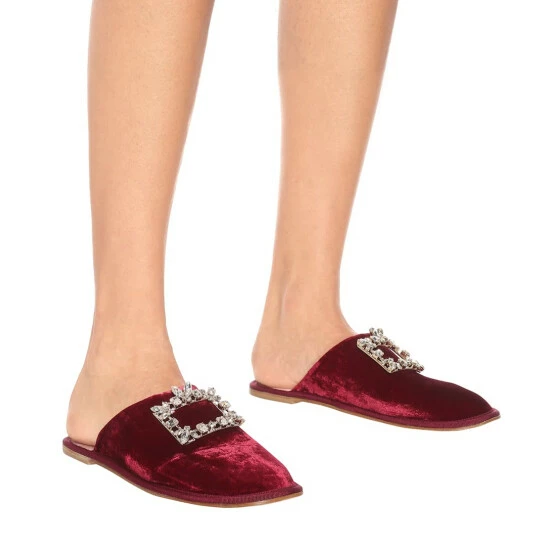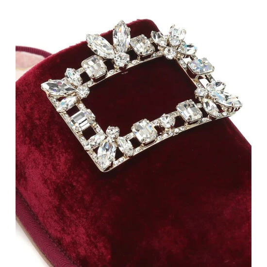 Achieve an opulent work-from-home aesthetic with these red Hotel Vivier slippers from Roger Vivier. Made in Italy from plush velvet, this backless style is cut with round toes and embellished with the label’s signature crystal-encrusted Strass buckles.