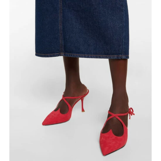Radiating classic French elegance, Roger Vivier’s I Love Vivier Bow String mules are full of charm and personality. They’re made in Italy from smooth suede with slim crossing straps and dainty side bow detailing.