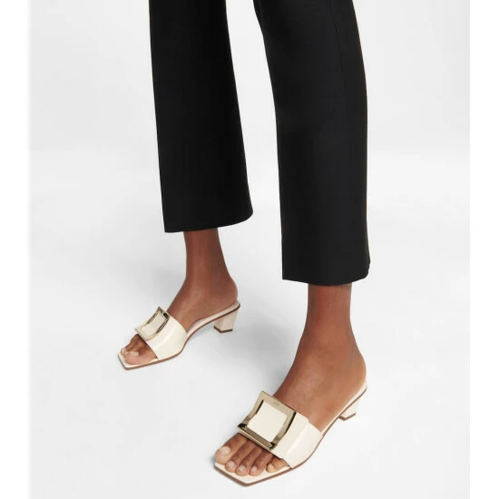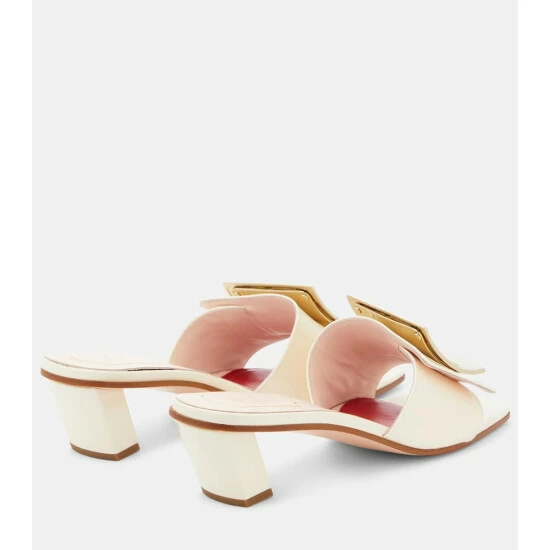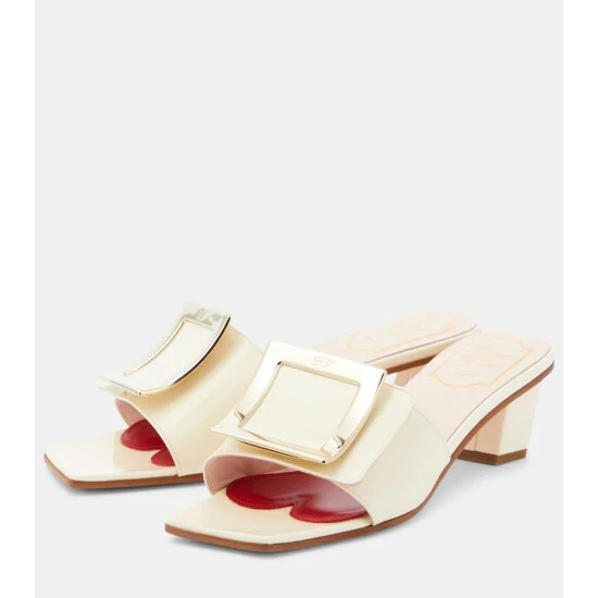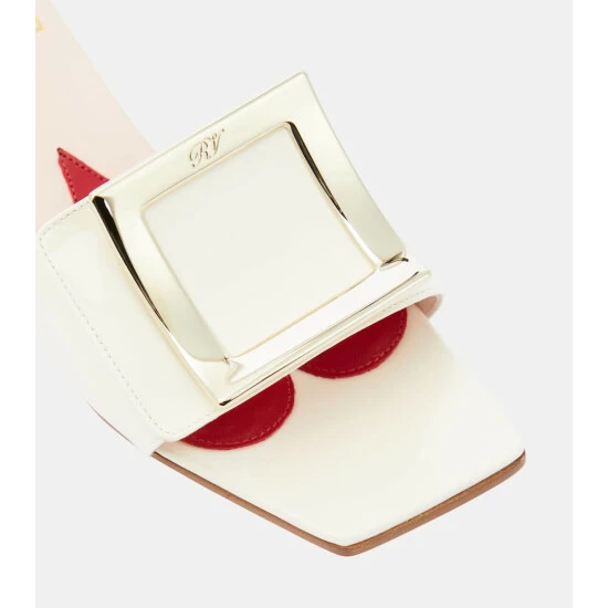 Featruring the label’s signature Strass buckles, Roger Vivier’s Love mules are set on 45mm block heels and have lovehearts embroidered on the soles.