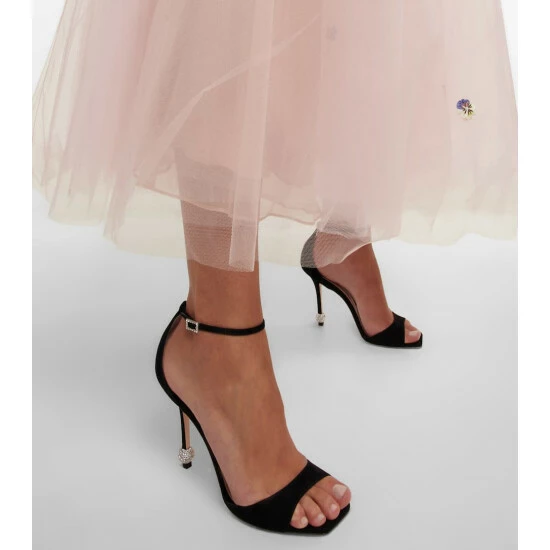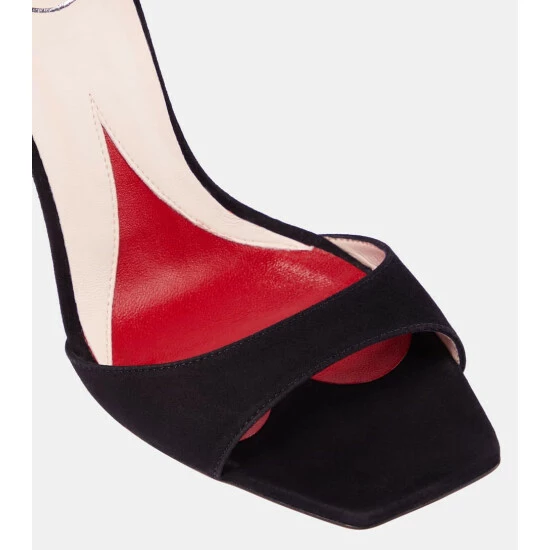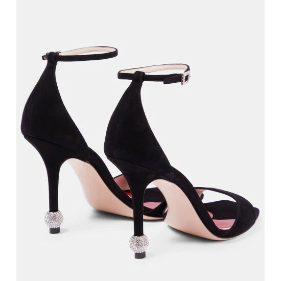 Roger Vivier subtly embellishes the Marlene sandals with rhinestones at the buckle and heel. Made from black suede, the pair features a red heart on the leather insole.