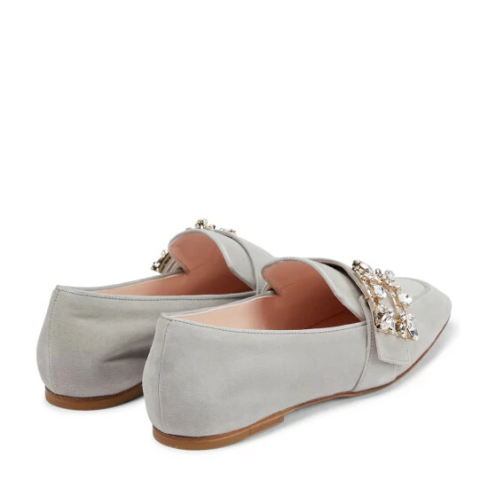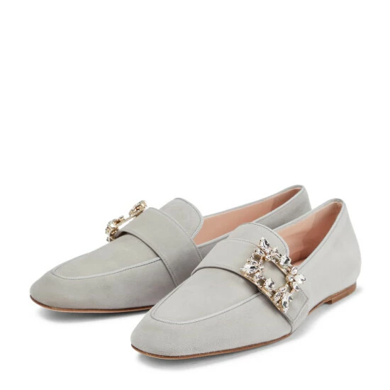 The Mini Broche loafers from Roger Vivier are a comfortable style with an elegant twist. They’re made by hand in Italy from gray suede and embellished with the Maison’s signature crystal buckles.