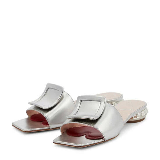 You’ll be gleaming with pride in the Mule 25 sandals from Roger Vivier. This style features a rhinestone-embellished heel for a glamorous quality.