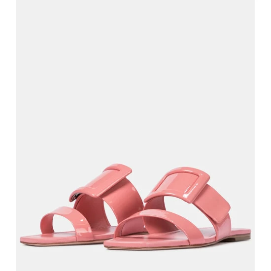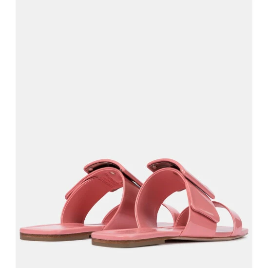 Roger Vivier’s take on summer slides is typically glamorous with these glossy slip-on sandals. Cast in a sugar-rush-inducing shade of pink, the pair is made from patent leather with tonal buckles atop the vamps. Let yours add a saccharine touch to summer neutrals.