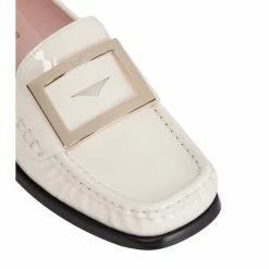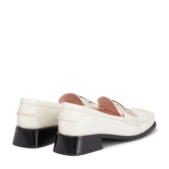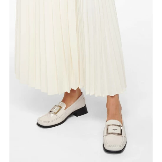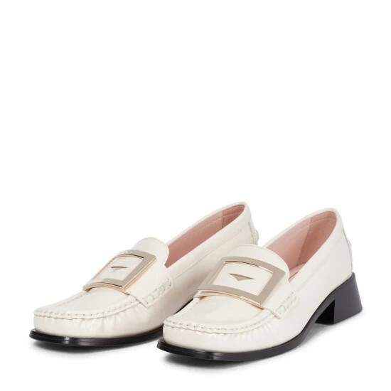 The Preppy Viv’ loafers from Roger Vivier take their inspiration from smart collegiate styles. They’re made by hand in Italy from white patent leather, with exposed stitching and branded metal buckles.