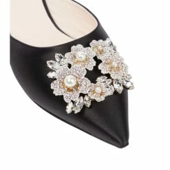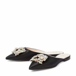 Roger Vivier’s RV Bouquet slippers are made from lustrous satin. This point-toe design is adorned with crystal-embellished buckles.