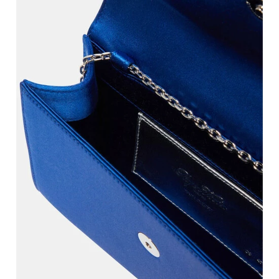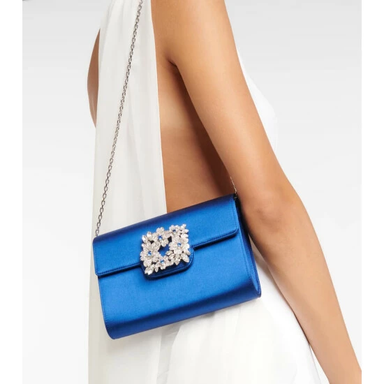 Polish off showstopping occasionwear with Roger Vivier’s RV Bouquet crossbody bag. This electric blue style is made in Italy from lustrous satin and features a floral Swarovski crystal-embellished buckle that’s hand-placed by skilled artisans. Match yours with the label’s pumps.