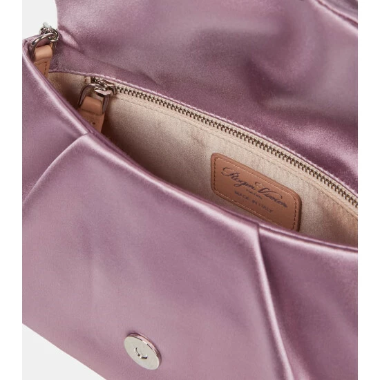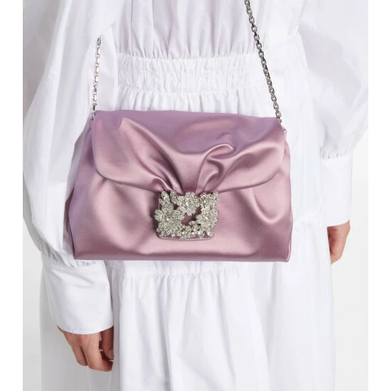 Polish off showstopping occasionwear with Roger Vivier’s RV Bouquet shoulder bag. This orchid-pink style is made in Italy from lustrous satin and features a floral Swarovski crystal-embellished buckle – hand-placed by skilled artisans. Match yours to the label’s pumps.