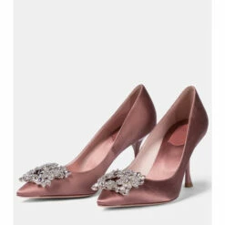 These pink pumps come fitted with Roger Vivier’s decadent RV Bouquet Strass buckles. Made from satin, they have a point-toe silhouette with sculptural 85mm heels that elongate the legs. You can save yours for a special occasion, but we also love the idea of incorporating them into an everyday look – with a sharply tailored suit, for example.