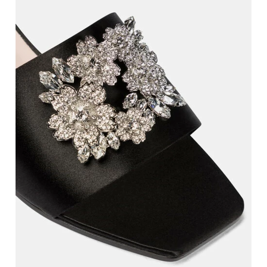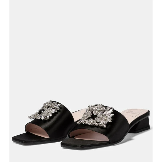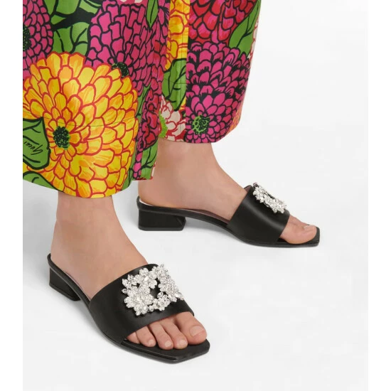 These black sandals come fitted with Roger Vivier’s decadent RV Bouquet Strass buckles. Made in Italy from satin, they have square open toes and slanted low block heels. You can save yours for a special occasion, but we also love the idea of incorporating them into an everyday look – with a sharply tailored suit, for example.