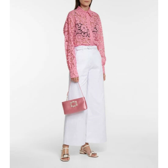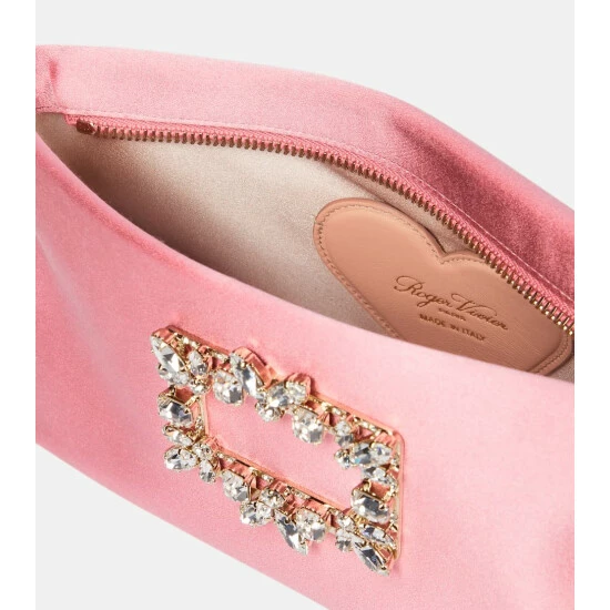 Amplify your occasionwear with the RV Nightlily Mini shoulder bag from Roger Vivier. Made from lustrous ”Rosa” pink satin, it’s accented with a signature crystal strass buckle – matched at the rhinestone-encrusted adjustable strap. Match yours to the label’s iconic footwear.