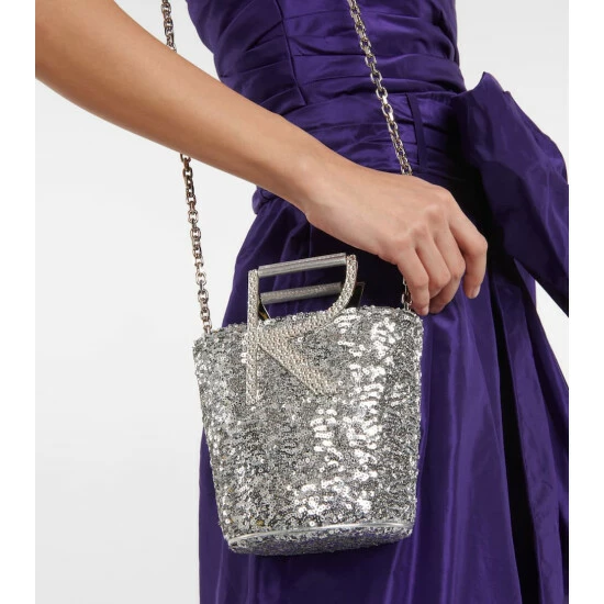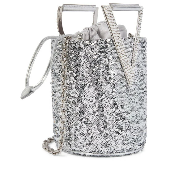 Roger Vivier continues to add glamour to your accessories edit with the RV Strass Mini bucket bag. Made from leather with silver-tone sequin embellishments throughout, it’s finished with a chain shoulder strap and fabric lining.