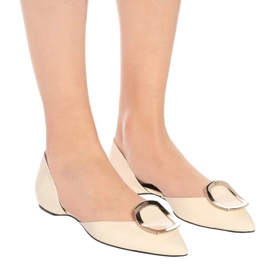 Take looks in an smart direction with the Sexy Choc ballet flats from Roger Vivier. The patent leather pair is crafted in Italy in an elegant d’Orsay silhouette that’s topped with the brand’s signature curved buckle details on the toes. Let their ivory colorway temper vibrant pantsuits.