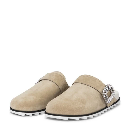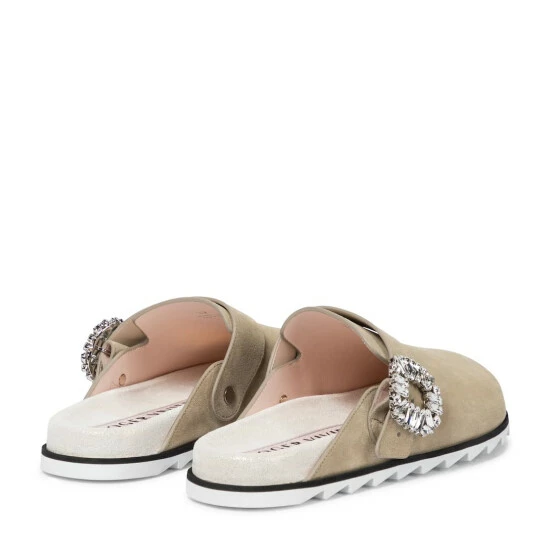 With the Slidy Viv’, Roger Vivier puts its signature decorous touch on the flat slipper. Made from soft beige suede, this pair is finished with the label’s signature sparkling strass buckles. Pair yours with cropped denim for a chic casual look.