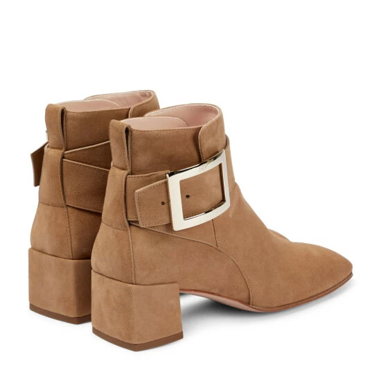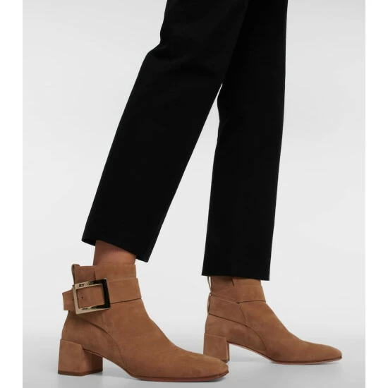 Refined sophistication personified, the So Vivier ankle boots from Roger Vivier are distinguished by soft, angular lines with square toes and covered block heels. They’re topped with brand-signature buckles at the wrap-around straps.