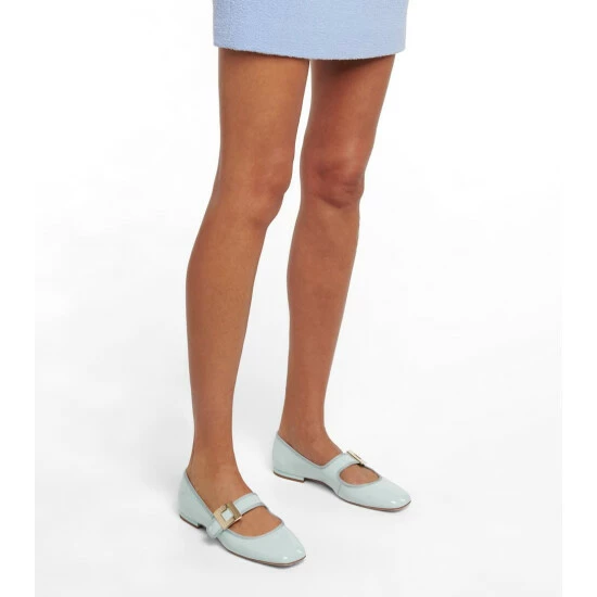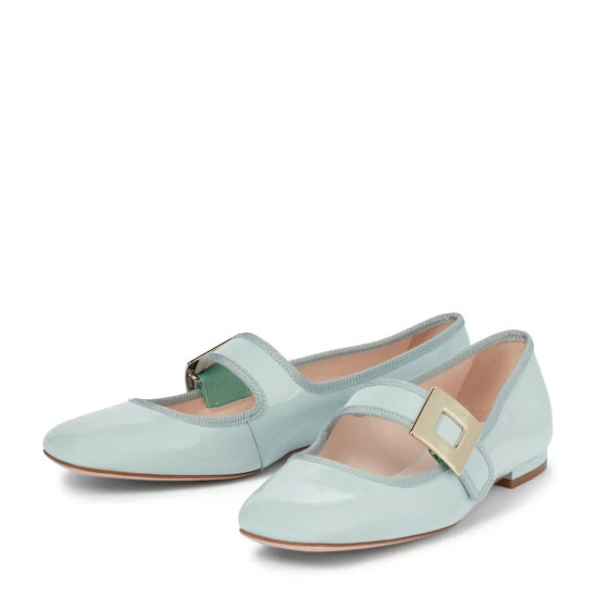 The Très Vivier Babies ballet flats from Roger Vivier will lend a glamorous and vintage-inspired touch to any ensemble. Made from patent pastel blue calfskin leather, they fasten with Mary Jane straps accented with signature buckles.