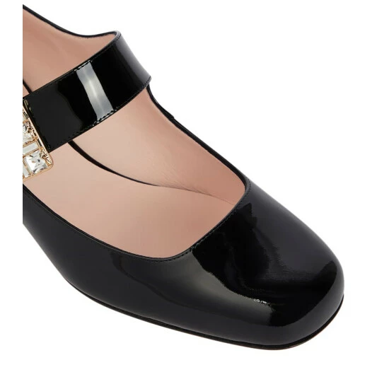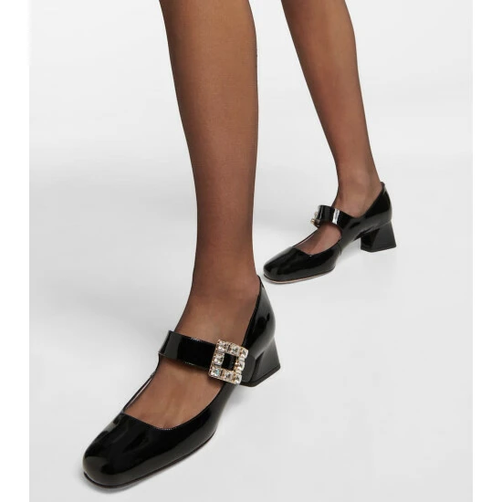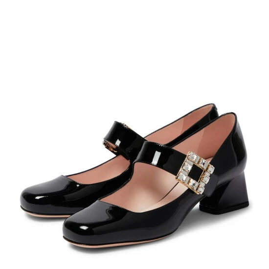 A glamorous take on classic Mary Jane silhouettes, Roger Vivier’s Très Vivier Babies pumps have sparkling strass buckles on their straps. They’re made in Italy from patent leather and set atop the brand’s angled 45mm block heels.