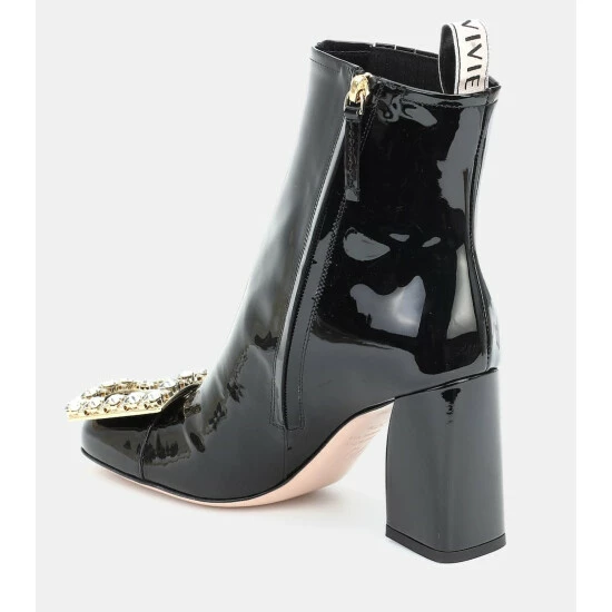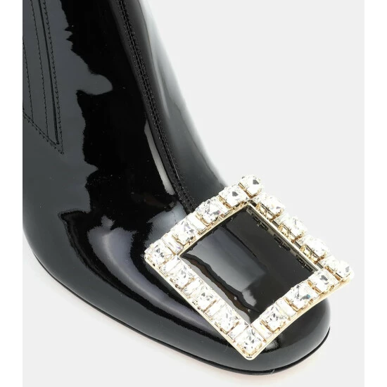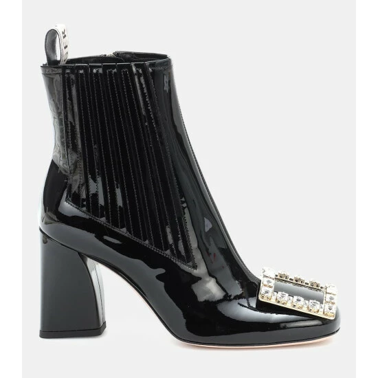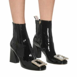 With the Très Vivier Strass ankle boots, Roger Vivier takes on the Chelsea boot silhouette and wins big. Both the uppers and 85mm block heels are made from black patent leather, a fabric that’s a worthy companion to the label’s signature crystal-embellished buckles.