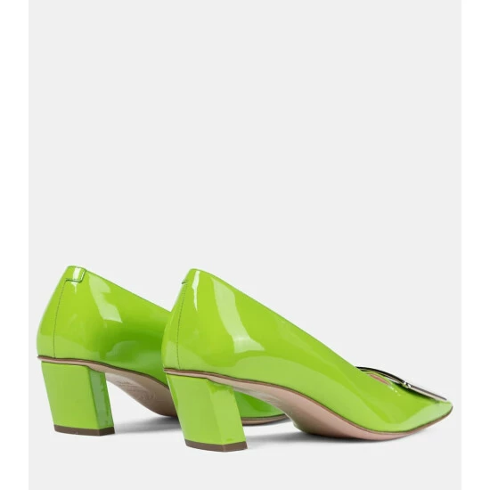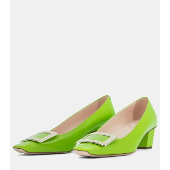 Roger Vivier’s signature Trompette pumps are reimagined for the season in a vivid green hue, making them a statement accompaniment to your weekday edit. Made in Italy from patent leather, they have square toes, which are embellished with the label’s logo-engraved buckles, and are set on slanted 45mm block heels.
